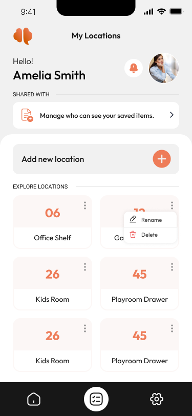 📍 Create & Manage Storage LocationsOrganise your items under spaces like Office Shelf, Kitchen Drawer, or Gym Bag. You can easily rename or edit your saved items.
